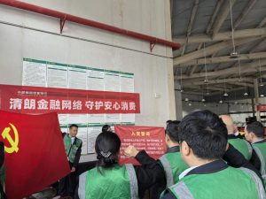 走进企业,筑牢职工“防骗墙”。3月10日下午,邮储银行黔西南州分行副行长陈国岭带领20余名党员团青走进洒金电商邮件处理中心,为分拣员、驾驶员和快递员开展主题宣传。活动现场悬挂“清朗金融网络 守护安心消费”标语,通过发放资料、一对一讲解、知识问答等形式,重点普及征信修复、存款保险、非法集资、网络安全及电信网络诈骗等知识,切实增强企业职工风险防范意识。